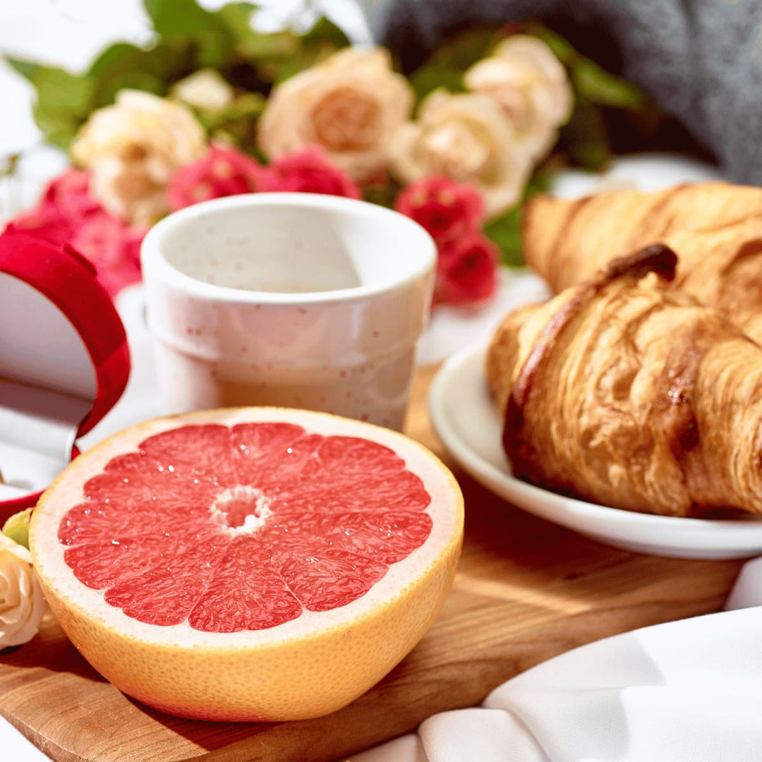 Ein schön gedeckter Tisch mit Frühstücksbrettchen aus Holz am Morgen schafft eine angenehme Atmosphäre und lädt zum genussvollen Start in den Tag ein. Ermögliche dir eine kurze Auszeit, um nachhaltig Energie zu tanken.